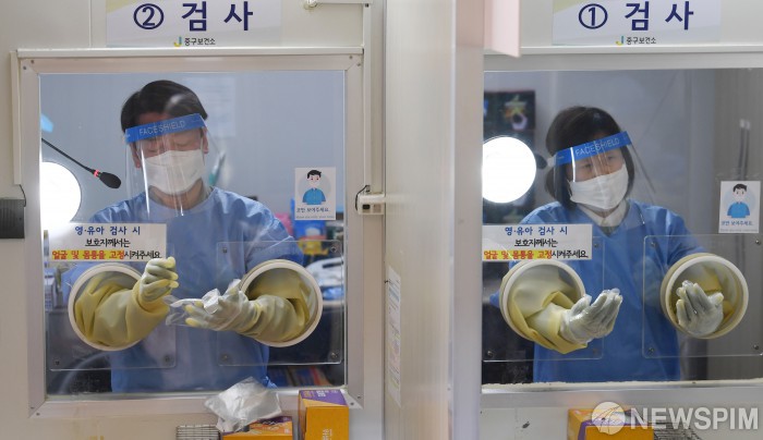 [서울=뉴스핌] 정일구 기자 = 안철수 국민의당 대선 후보가 설 연휴 마지막 날인 2일 오후 서울 중구보건소 선별진료소에서 부인 김미경 교수와 함께 코로나19 검체 채취 의료봉사 활동을 하고 있다. 이날 동행한 딸 안설희 박사는 행정 업무 등을 지원했다. 2022.02.02 mironj19@newspim.com