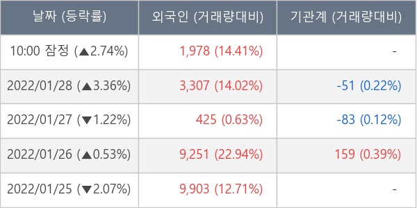 [표] 외국인ㆍ기관 순매매량 (단위 주)