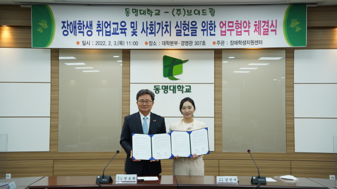 동명대는 3일 ㈜브이드림과 장애학생 취업역량강화를 위한 교육지원 업무협약(MOU)을 체결했다고 밝혔다.