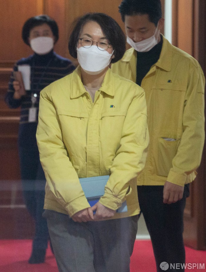 [서울=뉴스핌] 윤창빈 기자 = 임혜숙 과학기술정보통신부 장관이 4일 오전 서울 종로구 정부서울청사에서 열린 코로나19 대응 중앙재난안전대책본부 회의에 참석하고 있다. 2022.02.04 pangbin@newspim.com