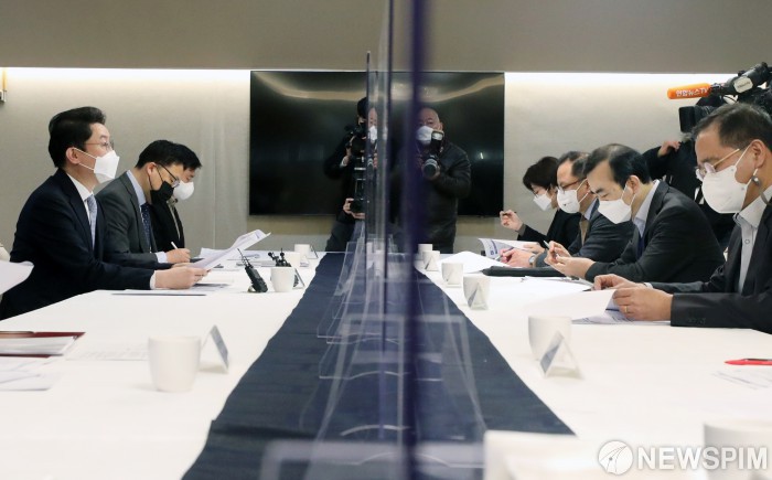[서울=뉴스핌] 윤창빈 기자 = 이억원 기획재정부 제1차관이 4일 오전 서울 종로구 정부서울청사에서 열린 우크라이나 사태 비상대응 TF 회의에서 발언을 하고 있다. 2022.02.04 pangbin@newspim.com