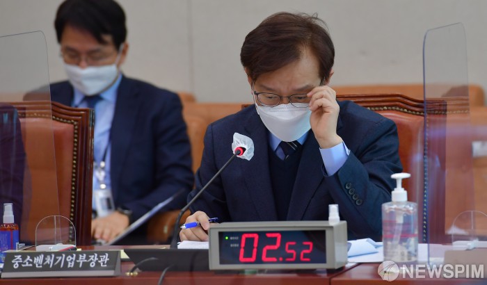 [서울=뉴스핌] 이형석 기자 = 권칠승 중소벤처기업부 장관이 4일 서울 여의도 국회에서 열린 산업통상자원중소벤처기업위원회 전체회의에서 자료를 살펴보고 있다. 2022.02.04 leehs@newspim.com