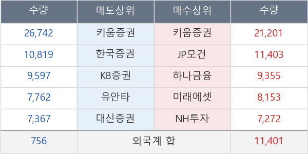 [표] 외국인ㆍ기관 순매매량 (단위 주)