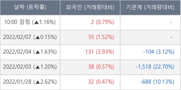 [표] 외국인ㆍ기관 순매매량 (단위 주)