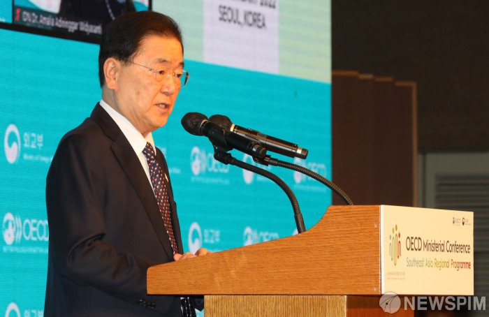 [서울=뉴스핌] 황준선 기자 = 정의용 외교부 장관이 9일 오후 서울 중구 롯데호텔에서 열린 'OECD 동남아프로그램(SEARP) 각료회의'에서 개회사를 하고 있다. 2022.02.09 hwang@newspim.com
