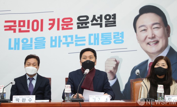 [서울=뉴스핌] 최상수 기자 = 국민의힘 김기현 원내대표가 11일 국회에서 열린 공명선거·안심투표 추진위원회 1차 회의에서 발언하고 있다. 2022.02.11 kilroy023@newspim.com