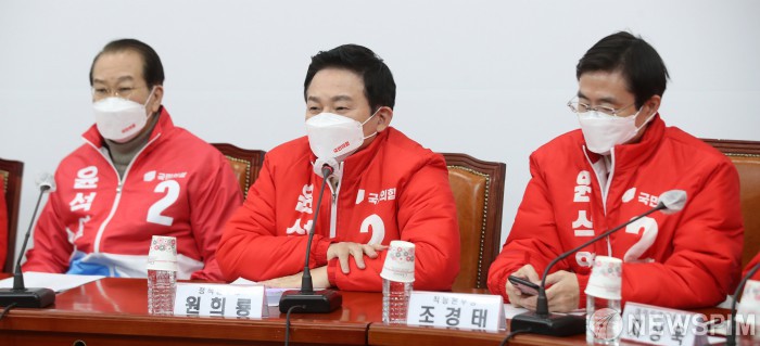 [서울=뉴스핌] 김학선 기자 = 원희룡 국민의힘 정책본부장이 1일 오전 서울 여의도 국회에서 열린 확대선거대책본부회의에 참석해 발언하고 있다. 2022.03.01 yooksa@newspim.com
