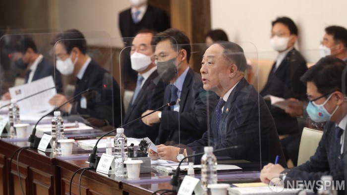 [서울=뉴스핌] 김학선 기자 = 홍남기 부총리 겸 기획재정부 장관이 3일 서울 종로구 정부서울청사에서 열린 소재·부품·장비 경쟁력강화위원회를 주재하며 발언하고 있다. 2022.03.03 yooksa@newspim.com