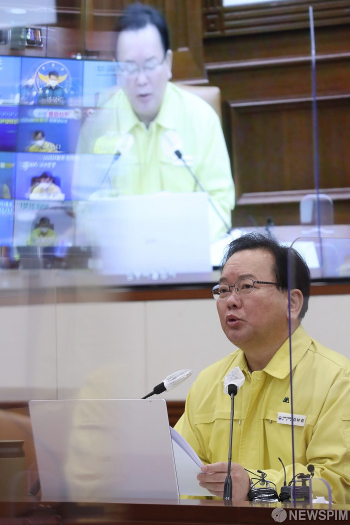 [서울=뉴스핌] 김학선 기자 = 김부겸 국무총리가 11일 서울 종로구 정부서울청사에서 열린 코로나19 대응 중앙재난안전대책본부 회의를 주재하며 발언하고 있다. 2022.03.11 yooksa@newspim.com