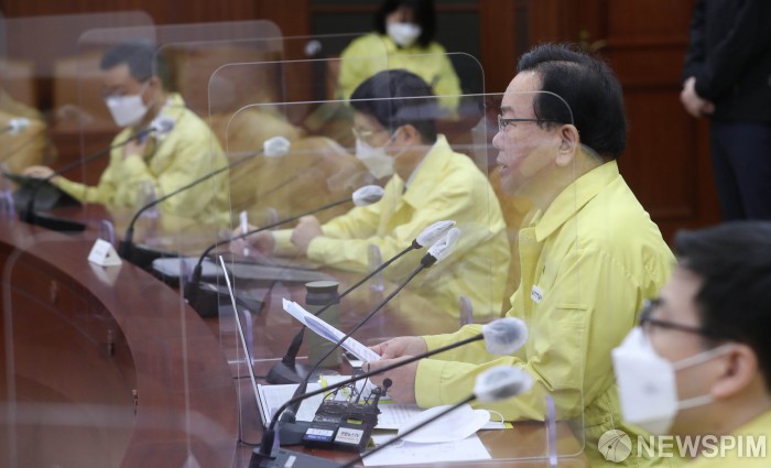 [서울=뉴스핌] 김학선 기자 = 김부겸 국무총리가 11일 서울 종로구 정부서울청사에서 열린 코로나19 대응 중앙재난안전대책본부 회의를 주재하며 발언하고 있다. 2022.03.11 yooksa@newspim.com