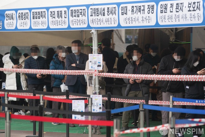 [서울=뉴스핌] 윤창빈 기자 = 코로나19 신규 확진자가 28만2987명으로 집계된 11일 오후 서울 송파구 코로나19 선별진료소를 찾은 시민들이 검사를 대기하고 있다. 사망자는 229명으로 다시 역대 최다를 기록했다. 2022.03.11 pangbin@newspim.com