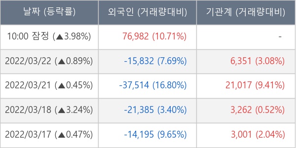 [표] 외국인ㆍ기관 순매매량 (단위 주)