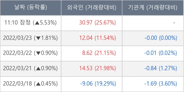 [표] 외국인ㆍ기관 순매매량 (단위 만주)
