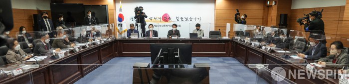 [서울=뉴스핌] 인수위사진기자단 = 안철수 대통령직인수위원장이 24일 오후 서울 종로구 통의동 인수위 대회의실에서 제2차 코로나비상대응특위 회의를 주재하고 있다. 2022.03.24 photo@newspim.com
