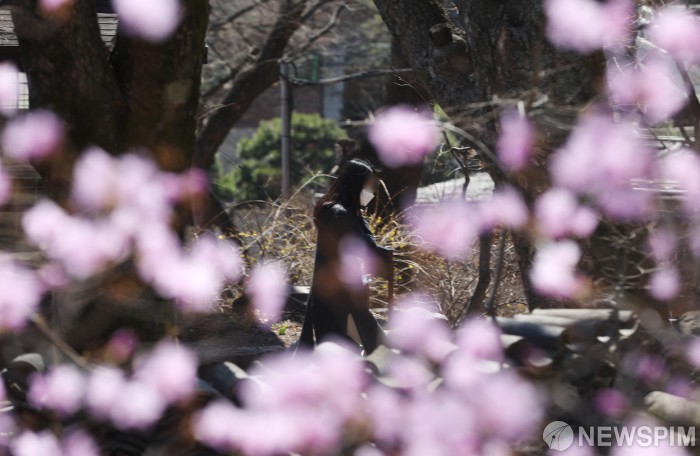 [서울=뉴스핌] 김민지 기자 = 포근한 날씨를 보인 28일 오후 서울 성북구 길상사에서 시민들이 봄기운을 만끽하고 있다. 2022.03.28 kimkim@newspim.com