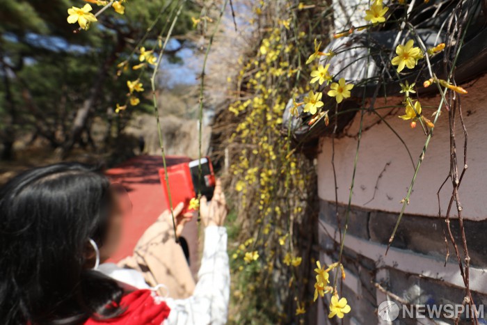 [서울=뉴스핌] 김민지 기자 = 포근한 날씨를 보인 28일 오후 서울 성북구 길상사에서 시민들이 봄기운을 만끽하고 있다. 2022.03.28 kimkim@newspim.com