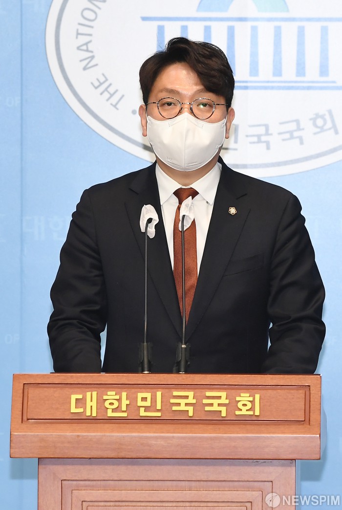 [서울=뉴스핌] 이형석 기자 = 신인규 국민의힘 전 상근부대변인이 30일 서울 여의도 국회에서 6·1 전국동시지방선거 서울 송파구청장 출마 선언 기자회견을 하고 있다. 2022.03.30 leehs@newspim.com