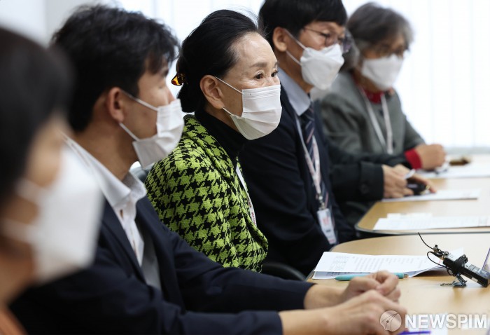 [서울=뉴스핌] 인수위사진기자단 = 한미영 한국청소년단체협의회장이 1일 오후 서울 종로구 통의동 제20대 대통령직 인수위원회에서 열린 청소년·가족단체 간담회에서 인사말을 하고 있다. 2022.04.01 photo@newspim.com