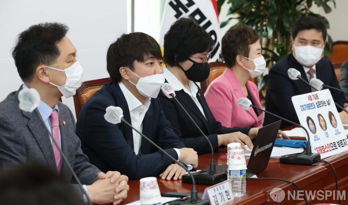 [서울=뉴스핌] 최상수 기자 = 이준석 국민의힘 대표가 4일 서울 여의도 국회에서 열린 국민의힘 최고위원회의에서 발언하고 있다. 2022.04.04 kilroy023@newspim.com