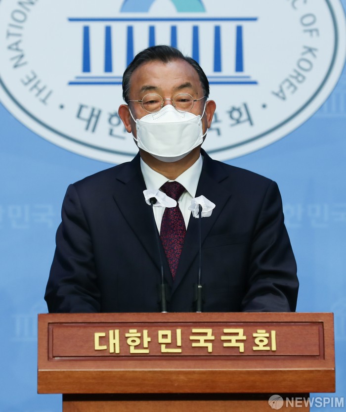 [서울=뉴스핌] 이형석 기자 = 이정현 전 새누리당 대표가 4일 국회 소통관에서 기자회견을 열고 6.1지방선거에서 전남지사 출마 선언을 하고 있다. 2022.04.04 leehs@newspim.com