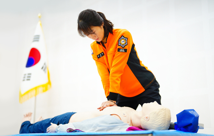 | 안선미 소방사가 심폐소생술 시범 모습.[사진=강원소방본부] oneyahwa@newspim.com |