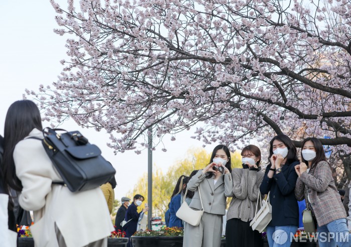 [서울=뉴스핌] 황준선 기자 = 포근한 봄 날씨를 보인 4일 오후 서울 여의도 여의나루역 인근 벚꽃나무들이 꽃을 피우기 시작해 시민들의 눈을 즐겁게 하고 있다. 2022.04.04 hwang@newspim.com