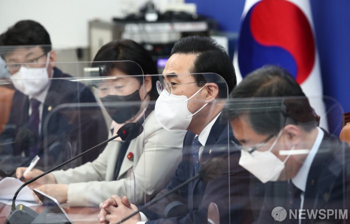 [서울=뉴스핌] 이형석 기자 = 박홍근 더불어민주당 원내대표가 7일 오전 국회에서 열린 정책조정회의에서 모두발언을 하고 있다. 2022.04.07 leehs@newspim.com