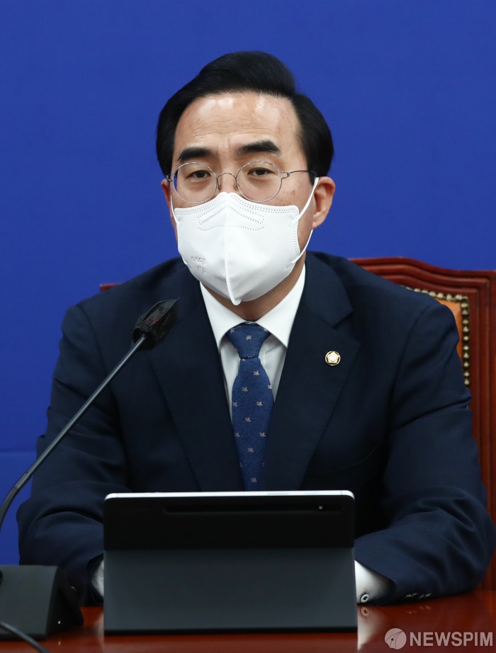 [서울=뉴스핌] 이형석 기자 = 박홍근 더불어민주당 원내대표가 7일 오전 국회에서 열린 정책조정회의에서 모두발언을 하고 있다. 2022.04.07 leehs@newspim.com