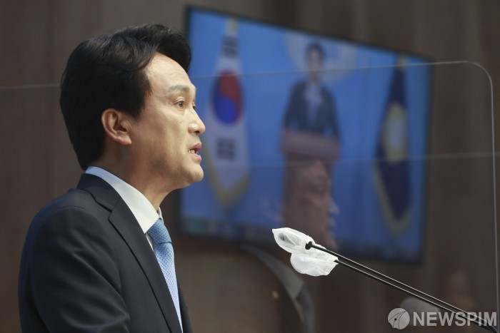 [서울=뉴스핌] 이형석 기자 = 안민석 더불어민주당 경기도지사 예비후보가 10일 오전 서울 여의도 국회 소통관에서 경기도지사후보 3자 단일화 제안 기자회견을 열고 있다. 2022.04.10 leehs@newspim.com