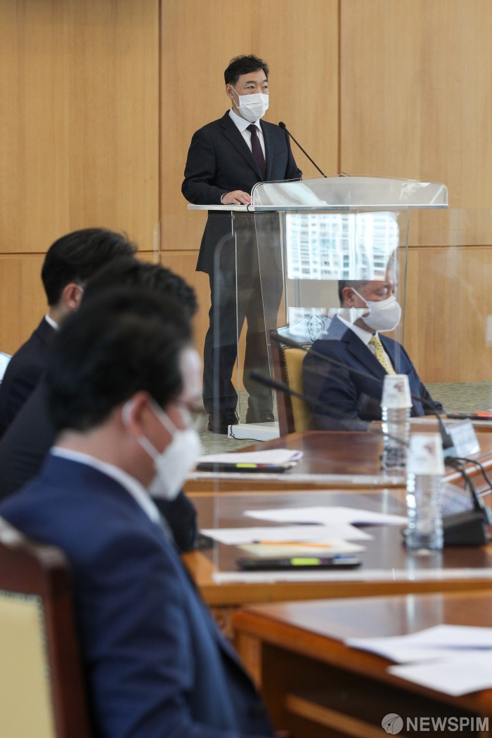[서울=뉴스핌] 황준선 기자 = 김오수 검찰총장이 11일 오전 서울 서초구 대검찰청에서 열린 전국검사장회의에서 모두발언을 하고 있다. 이날 회의에는 김 총장과 박성진 대검 차장, 전국 지검장 18명 등이 참석해 대면회의 방식으로 진행됐다. 2022.04.11 hwang@newspim.com