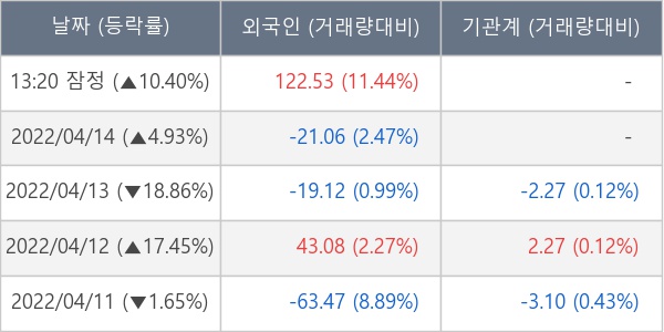 [표] 외국인ㆍ기관 순매매량 (단위 만주)
