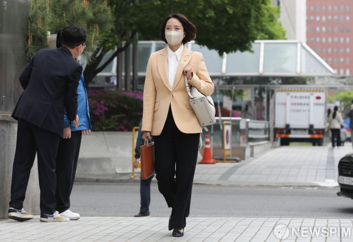 청문회 준비 사무실 출근하는 이영 중소벤처기업부 후보자