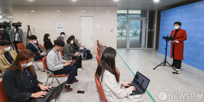 국회 소통관에서 기자간담회 갖는 김은혜 경기도지사 후보