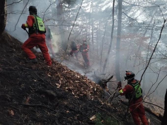 [양양=뉴스핌] 이형섭 기자 = 산림청은 22일 오후 1시 32분 신고 접수해 진화에 나선 강원 양양군 현북면 원일전리 산불이 확산되자 오후 4시 10분 산불 2단계를 발령했다.