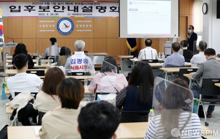 [서울=뉴스핌] 정일구 기자 = 제8회 전국동시지방선거를 한 달여 앞둔 26일 오후 서울 종로구 서울특별시선거관리위원회에서 입후보안내설명회가 열리고 있다. 2022.04.26 mironj19@newspim.com