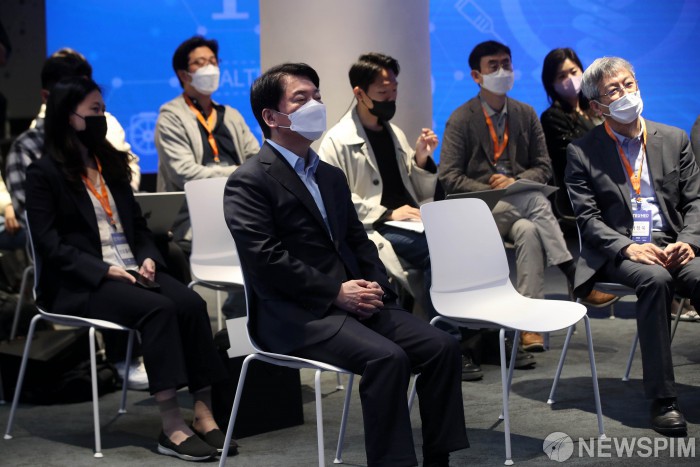 [서울=뉴스핌] 인수위사진기자단 = 안철수 대통령직인수위원장이 30일 오전 서울 동대문디자인플라자에서 열린 TEU-MED 2기 오리엔테이션에 자리 하고 있다. 2022.04.30 photo@newspim.com