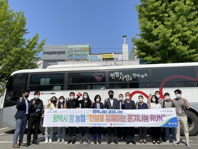 [평택=뉴스핌] 이성훈 기자 = 농협중앙회 평택시지부가 4일 지역농협, NH농협은행 등 범농협 직원 40여명이 참여한 가운데 농협 평택시지부 주차장에서 '헌혈로 함께하는 온기나눔 RUN' 사랑의 헌혈 캠페인을 전개했다.