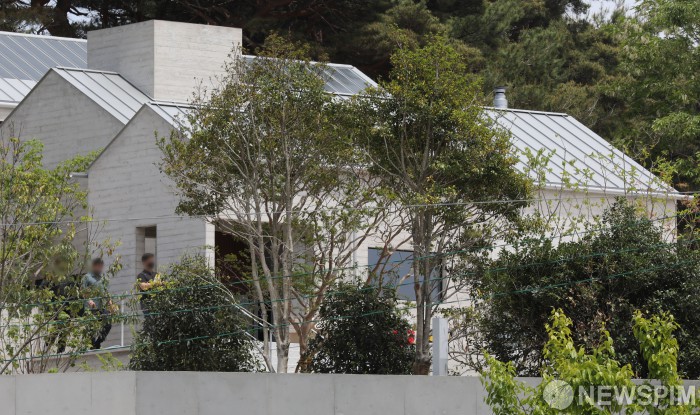 [양산=뉴스핌] 황준선 기자 = 문재인 전 대통령 내외가 귀향하는 10일 오후 경상남도 양산시 평산마을 문재인 대통령 내외의 사저에 관계자들이 오가고 있다. 2022.05.10 hwang@newspim.com