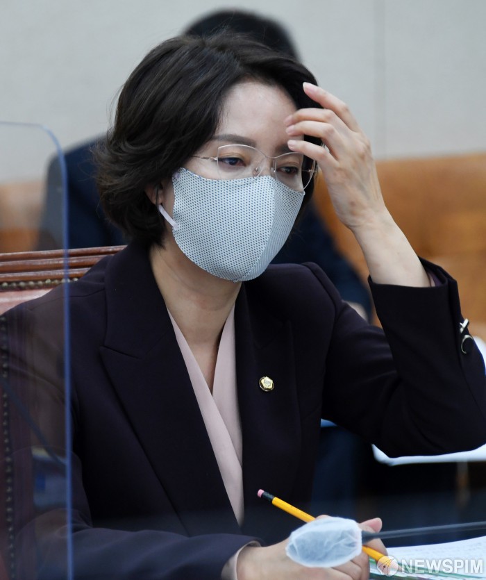 [서울=뉴스핌] 최상수 기자 = 이영 중소벤처기업부 장관 후보자가 11일 서울 여의도 국회 산업통상자원중소벤처기업위원회 회의실에서 열린 인사청문회에서 생각에 잠겨 있다. 2022.05.11 kilroy023@newspim.com