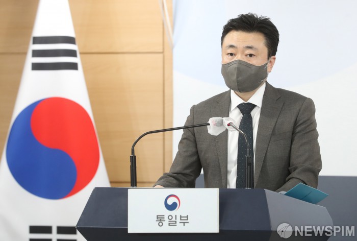 [서울=뉴스핌] 김학선 기자 = 차덕철 통일부 대변인 직무대리가 13일 서울 종로구 정부서울청사에서 열린 정례브리핑에서 북한 내 오미크론 감염자 발생과 관련한 질문에 답하고 있다. 2022.05.13 yooksa@newspim.com