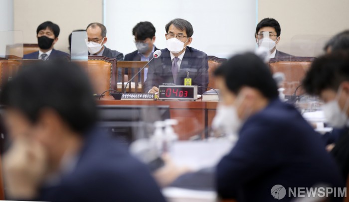 [서울=뉴스핌] 최상수 기자 = 노태악 중앙선거관리위원장 후보자가 13일 오후 서울 여의도 국회에서 열린 인사청문회에서 의원 질의에 답변하고 있다. 2022.05.13 kilroy023@newspim.com