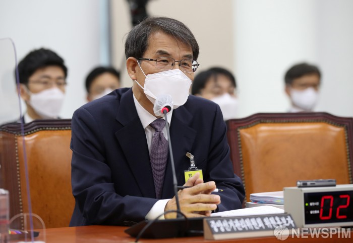 [서울=뉴스핌] 최상수 기자 = 노태악 중앙선거관리위원장 후보자가 13일 오후 서울 여의도 국회에서 열린 인사청문회에서 의원 질의에 답변하고 있다. 2022.05.13 kilroy023@newspim.com