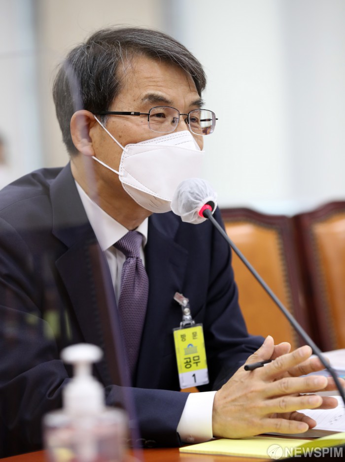 [서울=뉴스핌] 최상수 기자 = 노태악 중앙선거관리위원장 후보자가 13일 오후 서울 여의도 국회에서 열린 인사청문회에서 의원 질의에 답변하고 있다. 2022.05.13 kilroy023@newspim.com