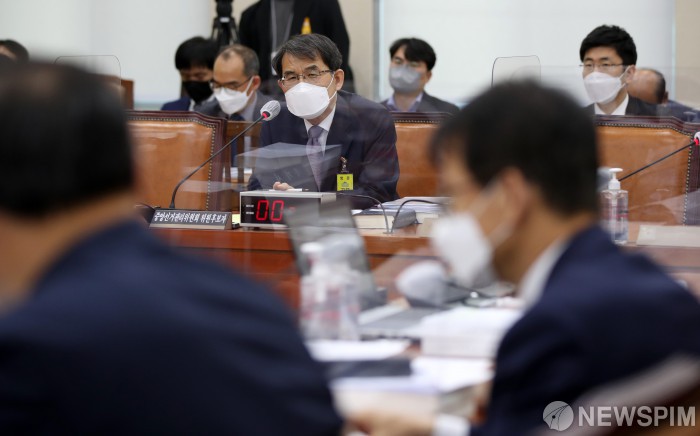 [서울=뉴스핌] 최상수 기자 = 노태악 중앙선거관리위원장 후보자가 13일 오후 서울 여의도 국회에서 열린 인사청문회에서 의원 질의에 답변하고 있다. 2022.05.13 kilroy023@newspim.com