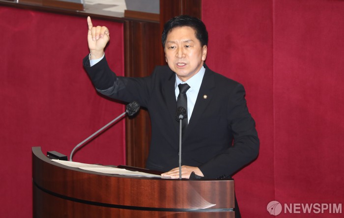 [서울=뉴스핌] 김민지 기자 = 김기현 국민의힘 의원이 20일 오후 국회에서 열린 제397회국회(임시회) 제3차 본회의에서 자신에 대한 징계안 상정이 부당하다는 변명을 하고 있다. 2022.05.20 kimkim@newspim.com