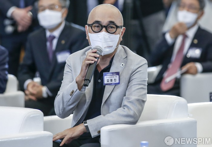 [서울=뉴스핌] 이형석 기자 = 김봉진 우아한형제들 의장이 24일 오전 서울 중구 대한상공회의소에서 열린 신기업가정신 선포식에 자유발언을 하고 있다. 2022.05.24 leehs@newspim.com