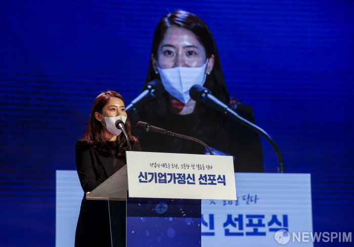 [서울=뉴스핌] 이형석 기자 = 김슬아 컬리 대표가 24일 오전 서울 중구 대한상공회의소에서 열린 신기업가정신 선포식에서 축사를 하고 있다. 2022.05.24 leehs@newspim.com