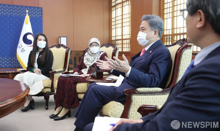 [서울=뉴스핌] 김학선 기자 = 박진 외교부 장관이 27일 서울 종로구 정부서울청사 외교부에서 주한 아세안 대사단과 접견하고 있다. 2022.05.27 yooksa@newspim.com