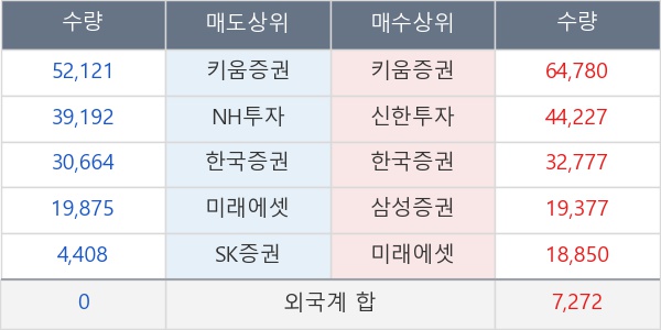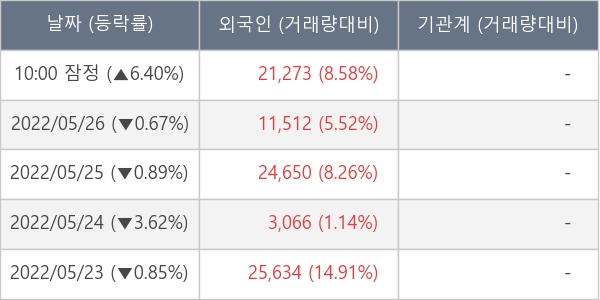 [표] 외국인ㆍ기관 순매매량 (단위 주)