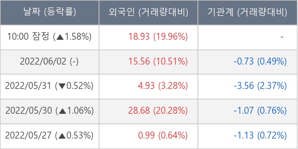 [표] 외국인ㆍ기관 순매매량 (단위 만주)